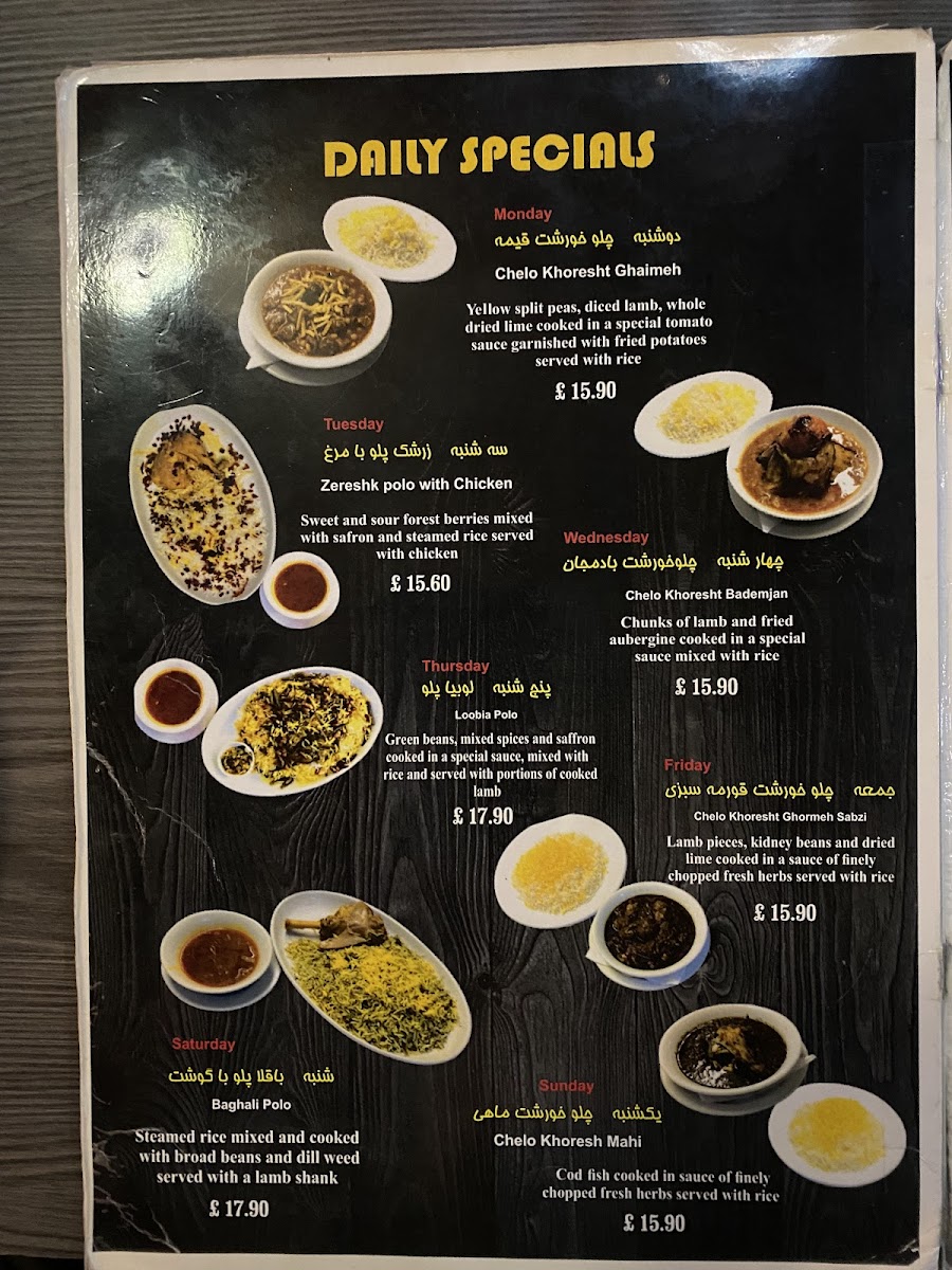 Start your journey with hearty Homemade Chicken Soup or indulge in the rich tastes of Paneer Sabzi and Mirza Ghassemi. Don’t miss their standout specialty, Kabab Koobideh, where succulent meats are grilled to perfection, served with freshly baked bread right from a traditional Iranian stone oven.